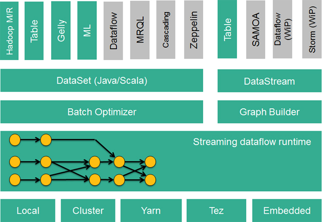 - Gelly,Flink的图计算库,提供了图计算的相关API及多种图计算算法实现。