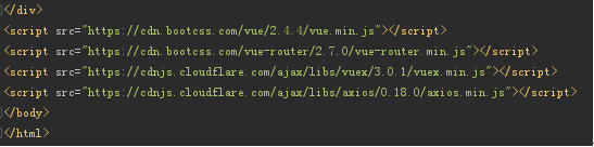 2、打包后首屏加载速度慢,加载的资源中vendor.js过大,是因为引用的第三方库过多导致,可以把其中vue vuex vue-router 以及axios分离出来采用cdn加载,在index.html中引入