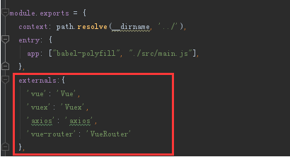 然后找到build/webpack.base.conf.js,在module.exports中添加以下代码