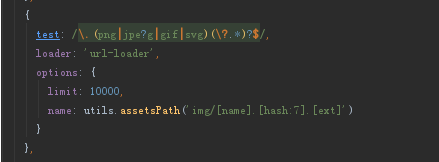 5、最后打包时,webpack会默认将10K以下的图片转化为base64,如果项目中的图片过多(base64过多,也会导致文件过大,考虑到首屏速度),可以考虑修改以下的数值(build/webpack.case.conf.js),单位为b,然后在合适的地方采用懒加载的方式加载图片