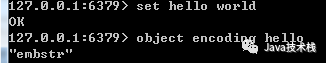 前面说过,Redis每个对象由一个redisObject结构表示,它的ptr指针指向底层实现的数据结构,而数据结构由encoding属性决定。比如我们执行以下命令得到存储“hello”对应的编码: