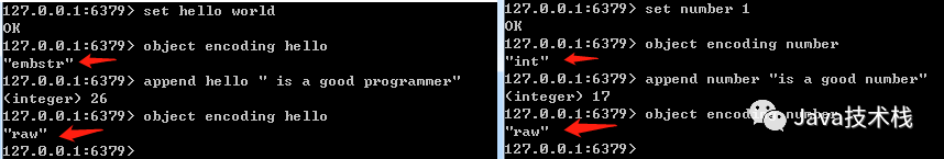 int编码字符串对象和embstr编码字符串对象在一定条件下会转化为raw编码字符串对象。embstr:<=39字节的字符串。int:8个字节的长整型。raw:大于39个字节的字符串。
