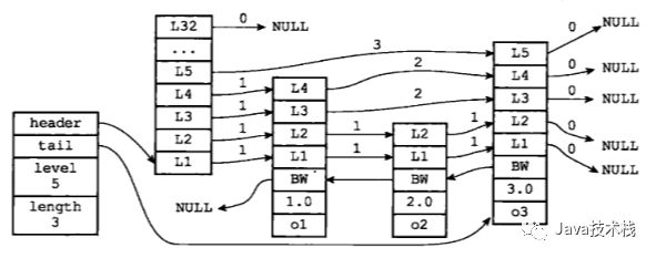 typedef struct zskiplist { // 表头节点和表尾节点 struct zskiplistNode *header, *tail; // 表中节点的数量 unsigned long length; // 表中层数最大的节点的层数 int level;} zskiplist;typedef struct zskiplistNode { // 成员对象 robj *obj; // 分值 double score; // 后退指针 struct zskiplistNode *backward; // 层 struct zskiplistLevel { // 前进指针 struct zskiplistNode *forward; // 跨度---前进指针所指向节点与当前节点的距离 unsigned int span; } level[];} zskiplistNode;