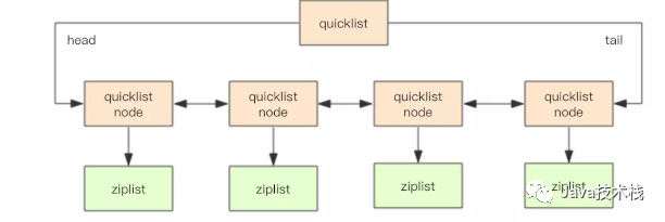 ziplist是Redis为了节约内存而开发的,是由一系列特殊编码的连续内存块(而不是像双端链表一样每个节点是指针)组成的顺序型数据结构;具体结构相对比较复杂,有兴趣读者可以看 Redis 哈希结构内存模型剖析。在新版本中list链表使用 quicklist 代替了 ziplist和 linkedlist: