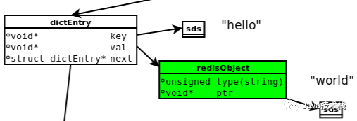 redisObject:值val“world”存储在redisObject中。实际上,redis常用5中类型都是以redisObject来存储的;而redisObject中的type字段指明了Value对象的类型,ptr字段则指向对象所在的地址。