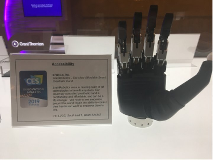 BrainRobotics 智能假手是一款需要与脑机端口技术、人工智能算法等相关技术结合使用的产品,是一种机械义肢产品。它可以透过肌肉神经控制,过辨识佩戴者手臂上肌肉神经讯号,辨识佩戴者的运动意图,再将运动意图转化成相应的运动指令,进而完成佩戴者想要完成的动作。另外,BrainCo 在这里加入了人工智能技术,BrainRobotics 可以在使用过程中,从讯号中学习用户的习惯,从而调整动作,让整个操作过程变得流畅。