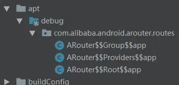 public class ARouter?Root?app implements IRouteRoot { @Override public void loadInto(Map<String, Class<? extends IRouteGroup>> routes) { routes.put("app", ARouter?Group?app.class); } } public class ARouter?Group?app implements IRouteGroup { @Override public void loadInto(Map<String, RouteMeta> atlas) { atlas.put("/app/main", RouteMeta.build(RouteType.ACTIVITY, MainActivity.class, "/app/main", "app", null, -1, -2147483648)); atlas.put("/app/second", RouteMeta.build(RouteType.ACTIVITY, SecondActivity.class, "/app/second", "app", null, -1, -2147483648)); } } public class ARouter?Providers?app implements IProviderGroup { @Override public void loadInto(Map<String, RouteMeta> providers) { } } -
