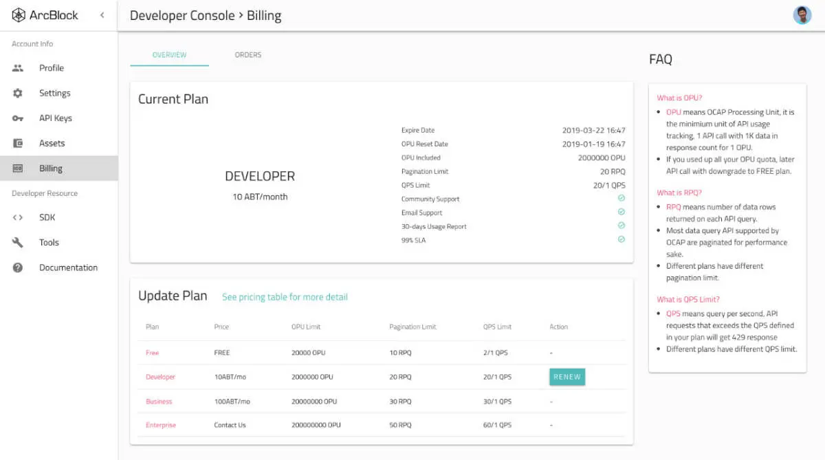 为了让用户享受更好的 OCAP 服务,我们定义了自己的服务保障等级,并且为企业级服务增加了付费功能,让企业级用户按月支付一定比例的 ABT 来享受更全面、更专业的服务。