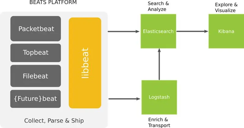 早期我们使用自主研发的Log4Net+MongoDB来收集和检索日志信息,但随着数据量的增加,查询速度却变得越来越慢。后期改为开源的ELK,虽然易用性有所下降,但它支持海量数据以及与编程语言无关的特征。下图是ELK的架构图: