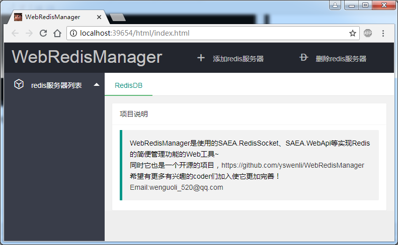 最近因为工作需要,使用了一些单机版Redis的界面化管理工具,使用过程中那惨痛的体验真的只有用过的人才能体会;为此本人和小伙伴准备动手一个Redis可视化工具,但是因为小伙伴最近工作比较忙,搞了一大半没有时间继续(会有后续,界面不敢说,使用体验上面肯定要比现有的好);本人对wpf不是很熟,再想到很久之前的web迅雷,就想动手实现一个web版的Redis的界面化管理工具;目前这个工具已初步成型,所以放出来分享一下。