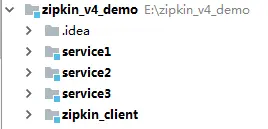 小白写的demo结构如下图,分别创建了service1、service2、service3三个boot应用,将brave整合部分单独作为一个module,这样可以嵌入服务中复用,避免重复编码。