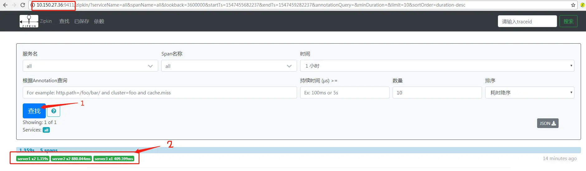 - web UI 是zipkin的服务端展示平台,主要调用search提供的接口,用图表将链路信息清晰地展示给开发人员。