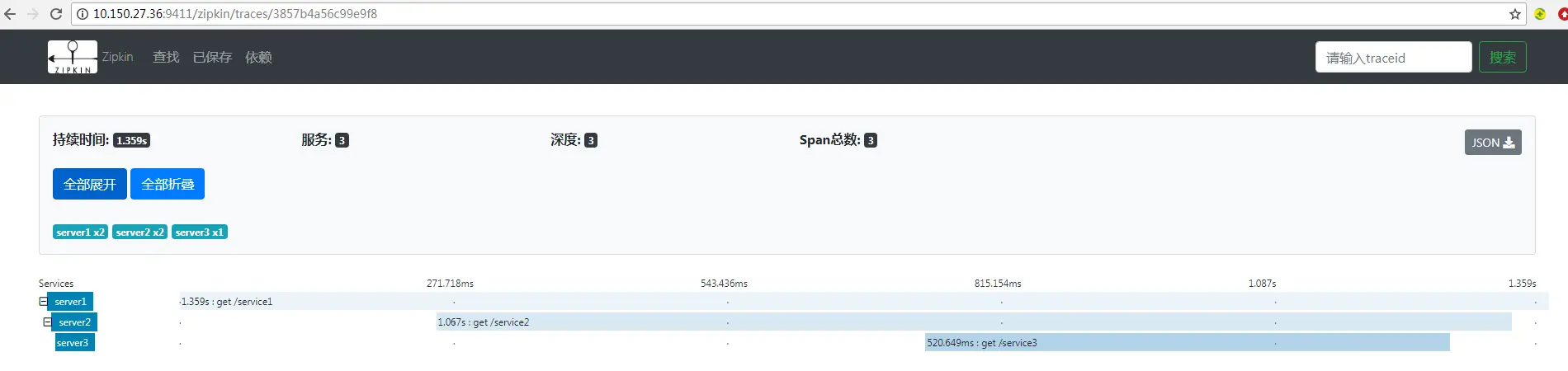 再看Demo中追踪链路的JSON数据