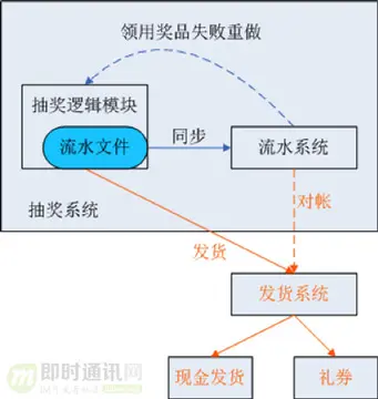 流水系统用于保存活动过程中的抽奖流水记录,在活动后对奖品发放和领用进行统计和对账。该系统还定时对领用失败的请求进行重做和对账,确保奖品发放到用户账户里。