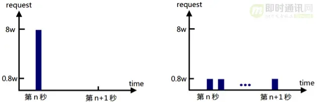 考虑这样一种场景,如果请求是在 1 秒的最开始全部涌到业务方,受限于业务方不同的架构实现,有可能会触发业务方的频率限制或者是过载保护。为此,我们将频限粒度调整到百毫秒,这样奖品就会在 1 秒内相对平均的发放,从而解决了上述问题。
