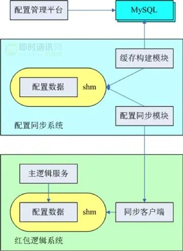 上千兆的配置数据,如何供抽奖系统快速检索?考虑到业务使用场景、配置数据大小及 MySQL 性能,可以采用预先构建全量缓存并进行有序组织,由同步模块负责将构建好的配置数据同步到抽奖系统,供业务进程直接使用。为保证配置数据完整性,构建缓存采用双 Buffer 设计,只有构建或同步完成后才切换到最新配置。