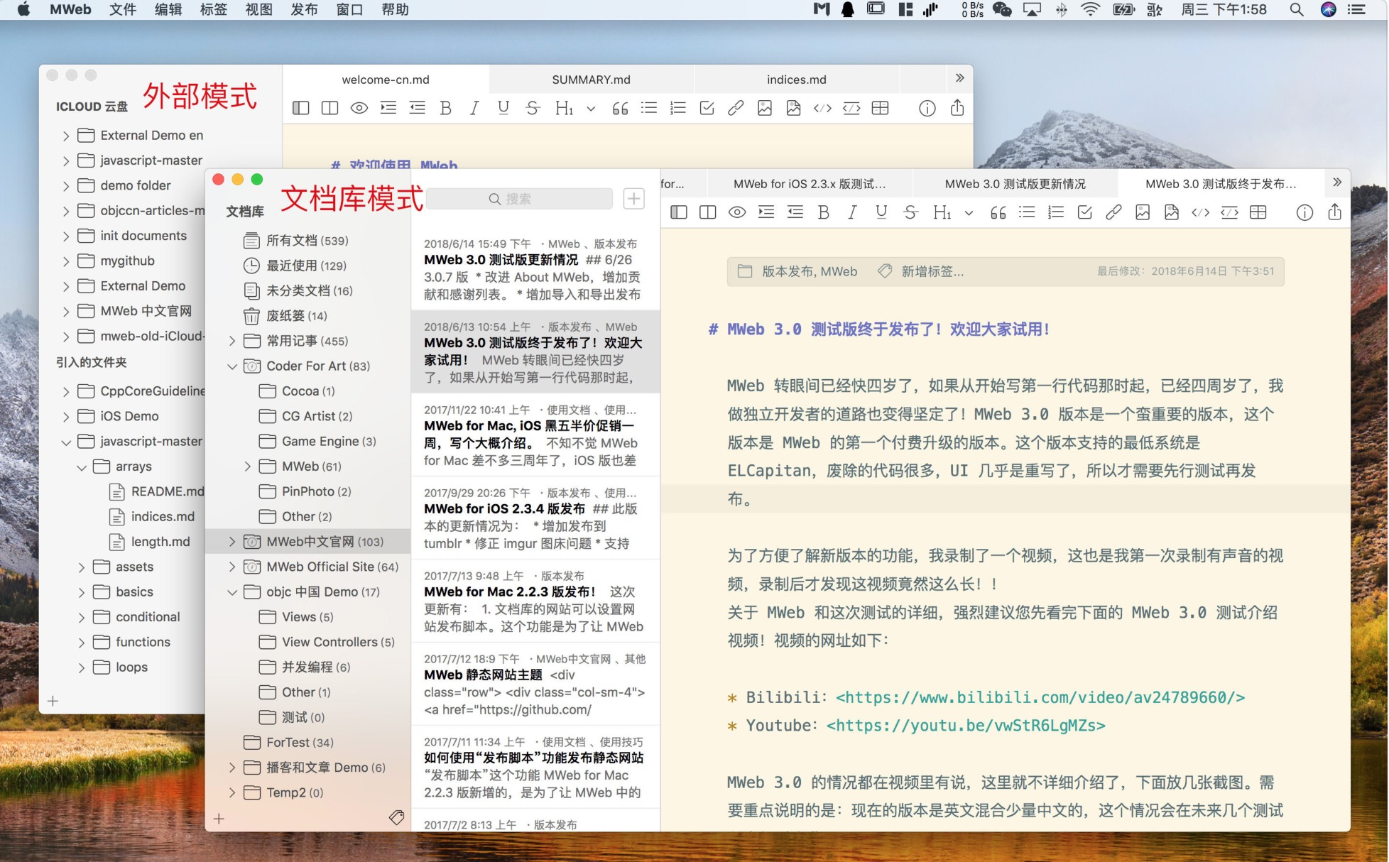我属于印象笔记的深度用户,平常都会写点或者保存东西到大象里面,觉得比较好的文章都会放到我的个人博客或者微信公众号中去,印象笔记的排版工具本身就已经足够了,但是写完之后直接复制粘贴到博客或者公众平台的版式全部都乱套了,我不得不将所有的版式重新排一遍这使得我痛苦不堪,一直苦于寻找能帮助我做好这一切的工具,遇到 MWeb 之后我确信这才是我想要的。