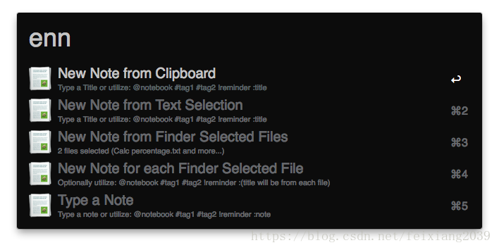 - 快速搜索:不管在哪里,按下 ^+⌘+E 即可打开印象笔记并定位到搜索框,用得最多;