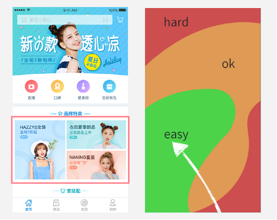 瓷片区位于用户最容易点击的区域,通过各类促销模式,具有较高的转化率,并能提升整个产品留存。