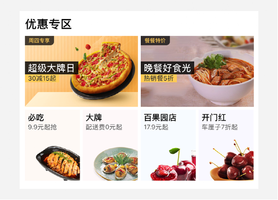 例如淘宝下方的运营位,美团外卖APP的优惠专区,小米有品APP的有品推荐。