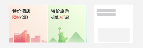 常用于旅游类、外卖类产品,标签分为主副文案两个板块,标签分为彩色标签和黑色透明标签,结合业务属性和想突出的文案,分别对应不同的标签;文案一般位于瓷片区域的左上角和左边垂直居中的位置。