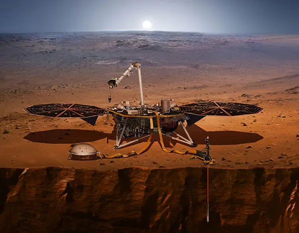 2018年5月5日凌晨4时05分,从位于加州中部的范登堡空军基地3号发射台发射升空,执行人类首个探究火星“内心”的探测任务。11月26日14时54分许,“洞察”号无人探测器在火星成功着陆。洞察”号任务全称“通过地震调查、测地学及热传导实施内部探测”,是首个研究火星内部的探测任务。