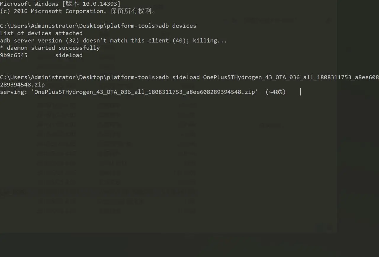 cmd 下使用命令 adb sideload xx包 // 某些情况下 会提示cant read files 换包或者是因为你的adb版本有问,测试adb devices 如果提示连接成功,则是包的问题,反之请下载adb最新版的兼容版本 win10已通过下载地址 https://dl.google.com/android/repository/platform-tools_r28.0.0-windows.zip