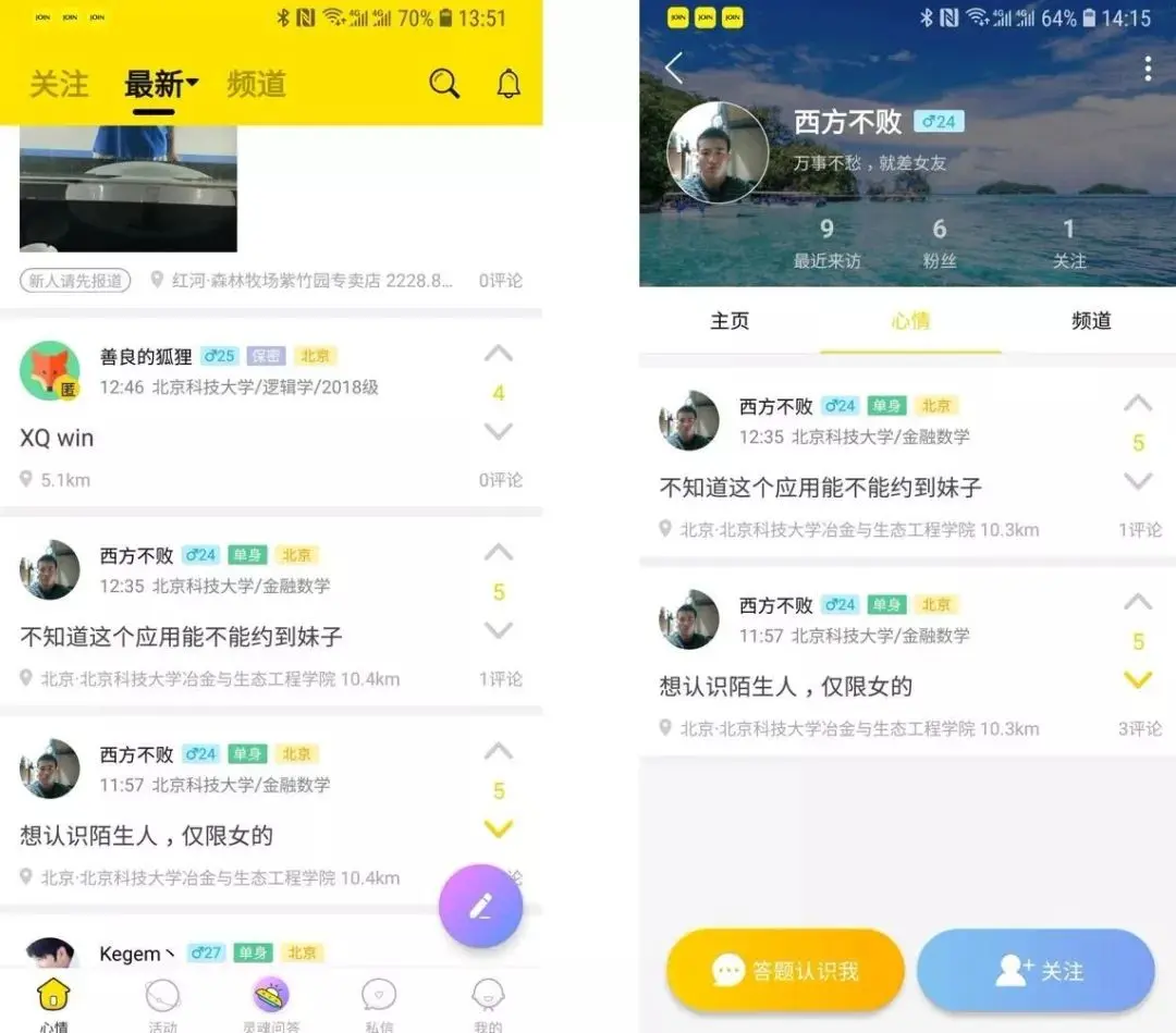 那一版JOIN产品的核心就是一个LBS的朋友圈,我期待每个用户可以通过发一些好玩的动态来包装自己,然后通过这些内容发现有意思的人,建立双向的关系。