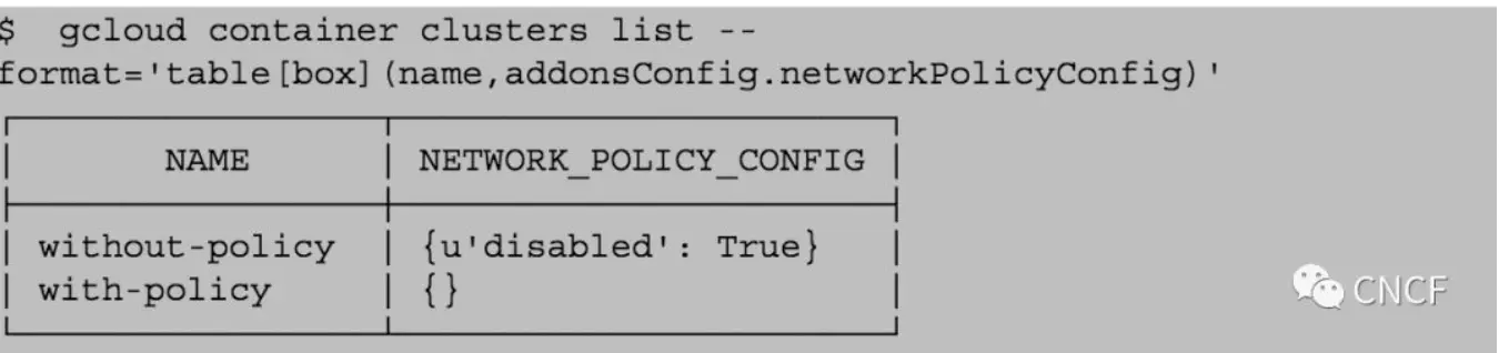 如果你在Google容器引擎中运行,可以检查集群是否在启用了策略支持的情况下运行: