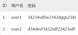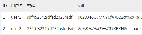 前文说道,密码太短,显然已经不安全了,那么为了提升负责度,就会强制把用户的密码变得更加复杂,于是,就产生了密码加salt的方案。salt肯定是需要一个比较的复杂的字符串,长度可以长一点。而且最好是,每个用户的salt是不一样的。以前的数据库结构是: