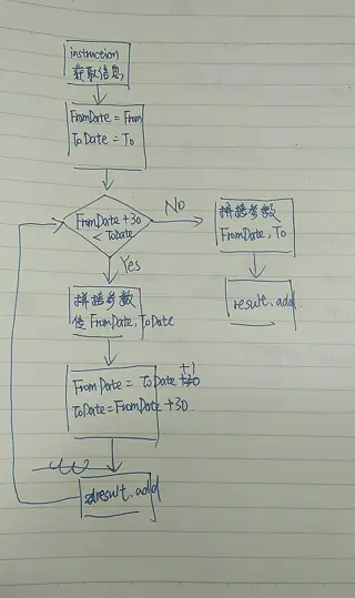 现在的逻辑:从instruction获取信息(时间 城市等) -> 将起始时间赋值给FromDate 结束时间赋值给ToDate -> 判断FromDate和ToDate之间是不是超过30天 -> 超过30天就截取前30天执行查询
