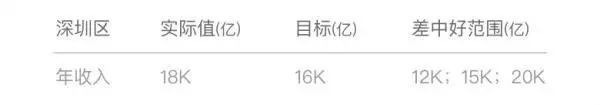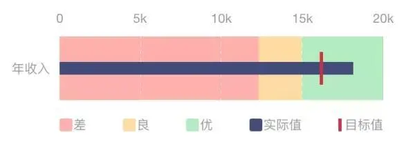 实际业务中,常要考察指标的达成情况,如收入达标情况及所处区间(优、良、差),如下表,你会怎么可视化呢?动手画一画吧!