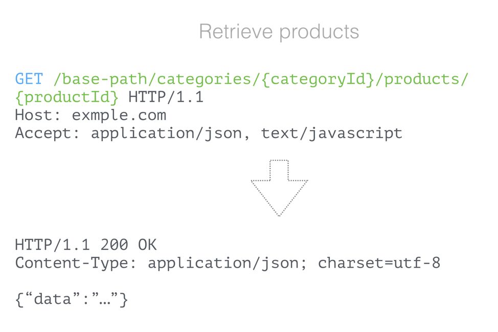 例子中使用路径参数构建URL和HTTP动词来区分我们需要对服务所做出的操作,而不是使用URL上的接口名称,例如 getProducts等;使用HTTP状态码,而不是在body中自定义一个状态码字段;URL需要有层次的设计,例如/catetory/{category_id}/products 便于获取path参数,在以后例如负载均衡和缓存的路由非常有好处。