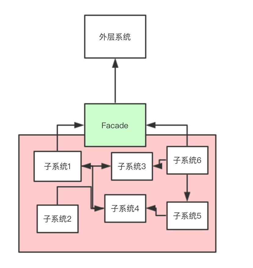 当维护一个遗留大型系统的时候,很难再此基础上拓展它难以维护下去,可能使用外观模式是非常好的一个选择。