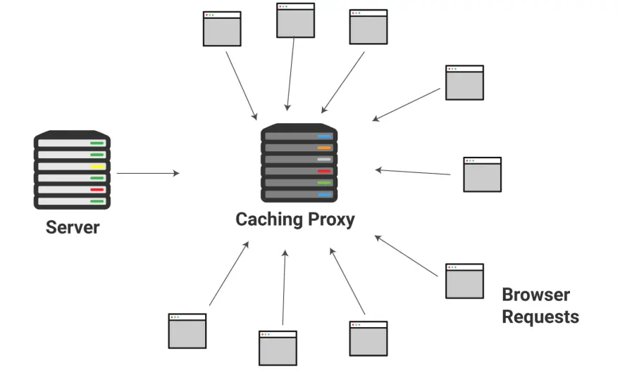 就像超市一样,服务器端缓存可以处理高并发的请求,并更快速,更可靠地提供内容。上图中,有一个术语是缓存代理——一种服务器,用于存储常见的请求响应。缓存代理将拦截常见请求并快速传递响应。它可以防止这些请求对主 Web 服务器造成压力。