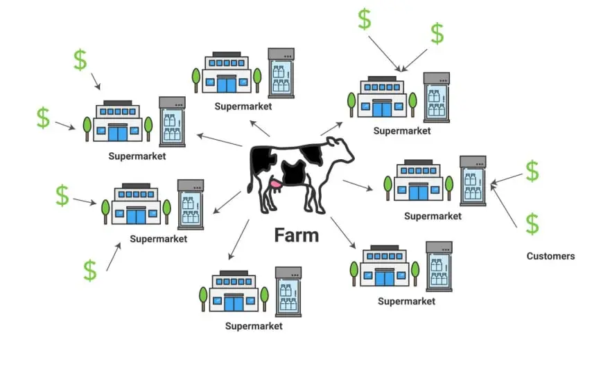 回到农场场景,我们怎样才能更容易地经营好奶牛场呢?答案是拥有一家带有冷藏技术的超市!如此一来人们就不需要亲自到奶牛场去喝牛奶。你也可以将牛奶安全地存放一段时间。