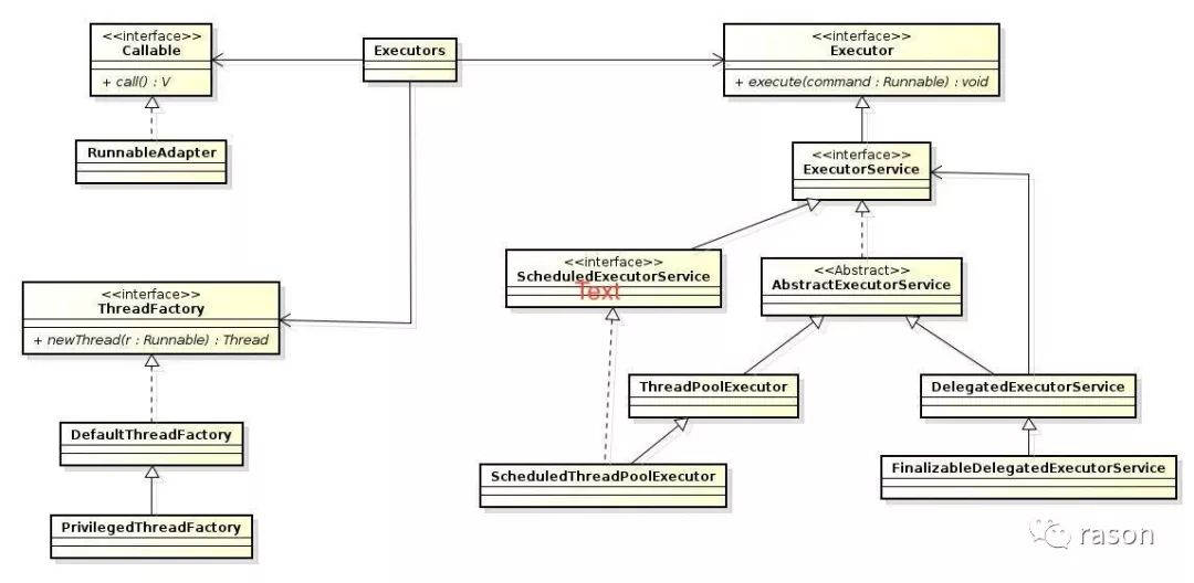 说到这里,大家肯定已经被线程池所用到的一些类会接口搞乱了,借用一张类图让大家理清一下结构: