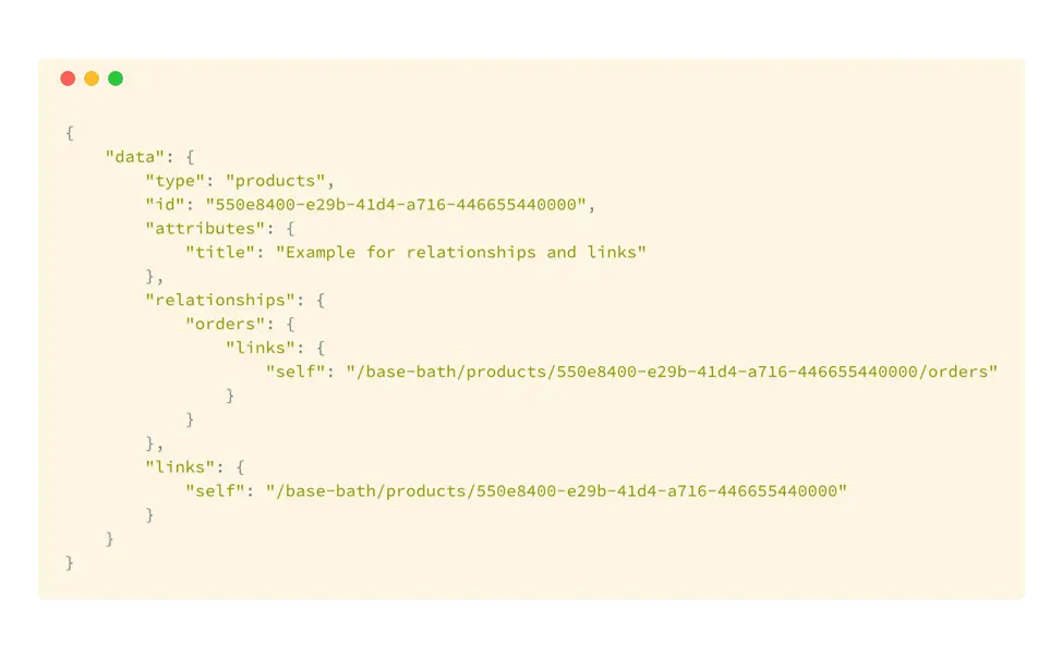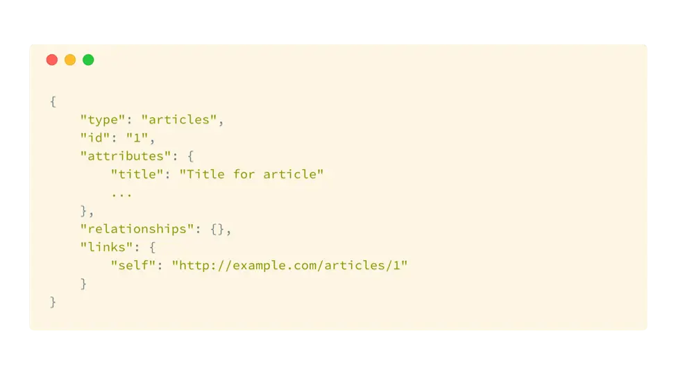 - relationships、links为可选属性,用来放置关联数据和资源地址等数据