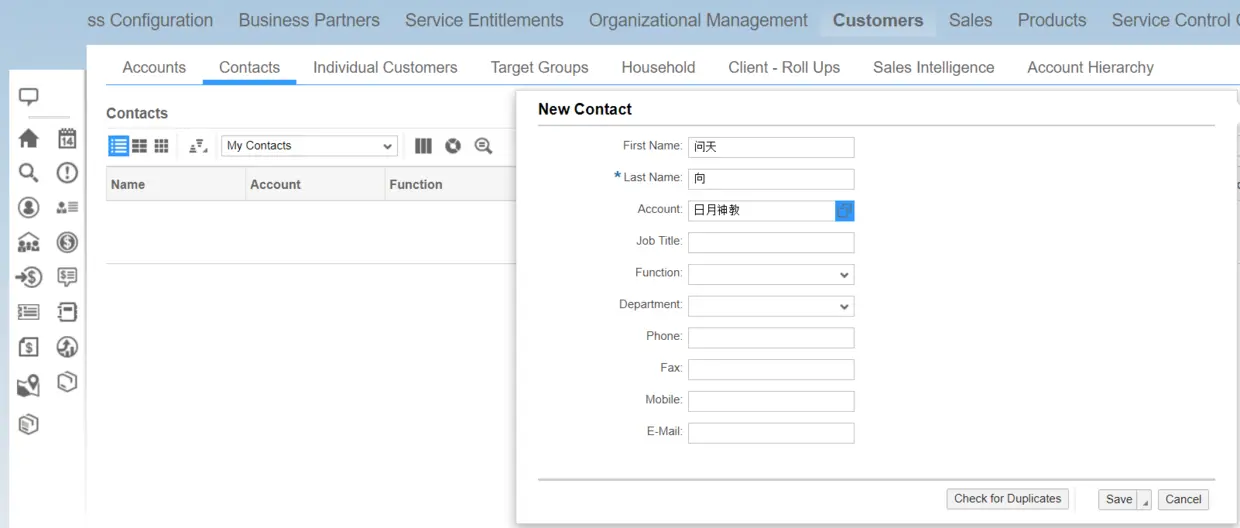 在SAP Cloud for Customer的Customers工作中心里,有三个视图:Accounts,Contacts和Individual Customers。