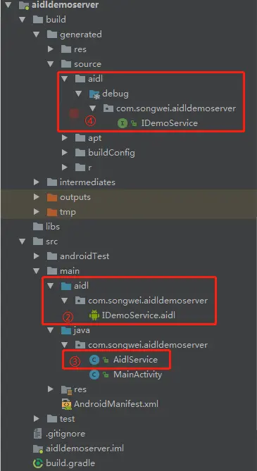 (1)在Server端IDemoService.aidl同一目录中添加一个新的.aidl接口文件,我这里命名为IDemoCallback.aidl,内容如下: