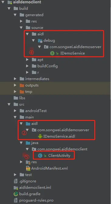 第13行和第15行为新增的方法。将这两个.aidl文件同步到Client端,使C/S两端的aidl文件完全一样,均为