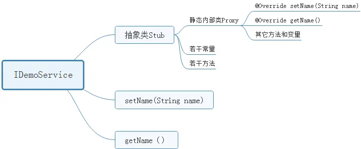 RemoteCallbackList是系统提供的一个用于存储回调对象的列表,其对象mCallbacks用于存储注册的IDemoCallback对象。通过第3行的callback()方法中的内容,我们可以推测它是采用一种类似于Broadcast的方式来实现回调的。当setName()方法执行完毕后,callback("'Andy song' is setted");就会把回调信息反馈给Client中注册该回调的地方了。