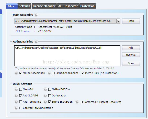 整合的功能在这里配置,必须要有一个主程序集,就是把附加的程序集都整合到这个程序集中。附加的程序集可以以嵌入的方式或者整合的方式。若选择整合的方式,建议勾选仅整合(不保护)。
