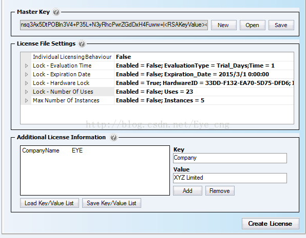 当客户端软件使用过期时,此时就需要购买许可证文件。此界面就是用于生成许可证。生成许可证也可以配置,可以设置许可证的过去时间,使用次数,是否针对特定的电脑等。