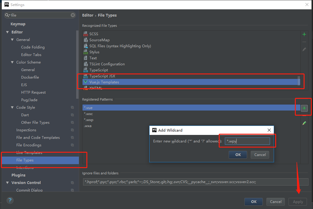 webstorem支持微信小程序wepy代码高亮 阿青007 2019-01-16 890 阅读1分钟 因为小程序wepy是类vue写法,所以我们可以通过修改vue.js插件来实现wepy代码高亮。 第一步:打开WebStorm的Preferences,点击Plugins,搜索vue.js插件并安装 第二步:在Preferces中点击 File Types,修改vue.js template,添加*.wpy