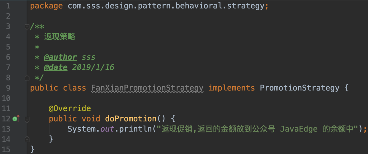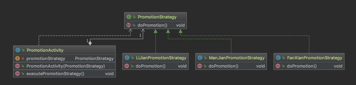 - 抽象策略角色,它是一个非常普通的接口,在我们的项目中就是一个普通得不能再普通的接口了,定义一个或多个具体的算法
