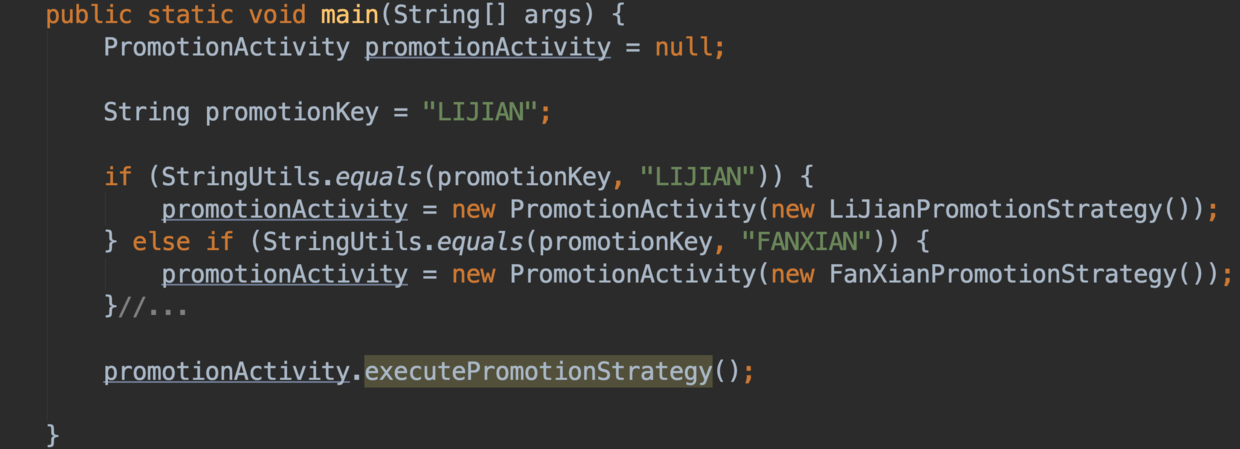 - 一个系统需要动态地在几种算法中选择一种