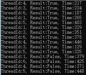 vartest=newTest();Parallel.For(1,16,(i)={varstopwatch=newStopwatch();stopwatch.Start();vardata=test.Buy();stopwatch.Stop();Console.WriteLine($ThreadId:{Thread.CurrentThread.ManagedThreadId},Result:{data},Time:{stopwatch.ElapsedMilliseconds});});Console.ReadKey();