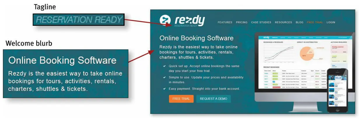 One of the most valuable bits of real estate is the space right next to the Site ID. When we see a phrase that’s visually connected to the ID, we know it’s meant to be a tagline, and so we read it as a description of the whole site. We’ll look at taglines in detail in the next section.