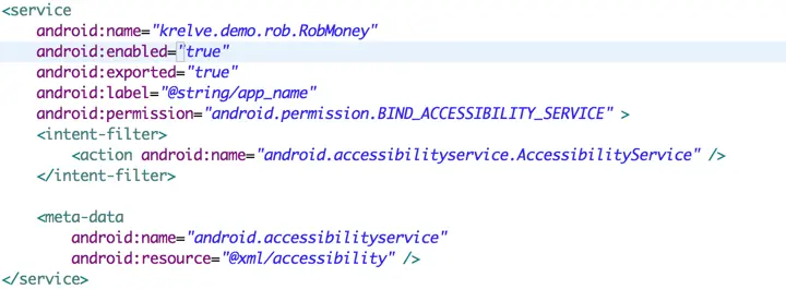 android:permission="android.permission.BIND_ACCESSIBILITY_SERVICE"
